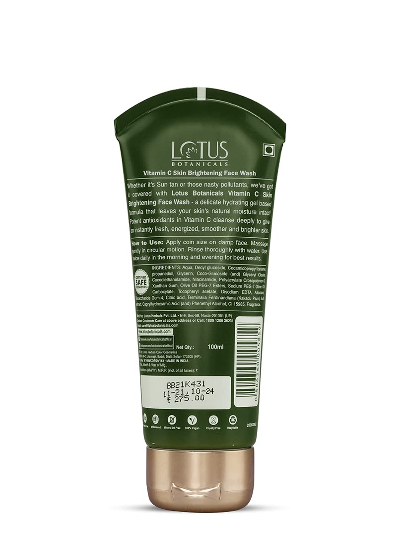 • BENEFITS: Lotus Botanicals Skin Brightening Face Wash neutralizes free radic. 100% Natural Vitamin C helps combat hyperpigmentation and evens-out skin tone. It o purifies the skin to reveal healthy and glowing skin.