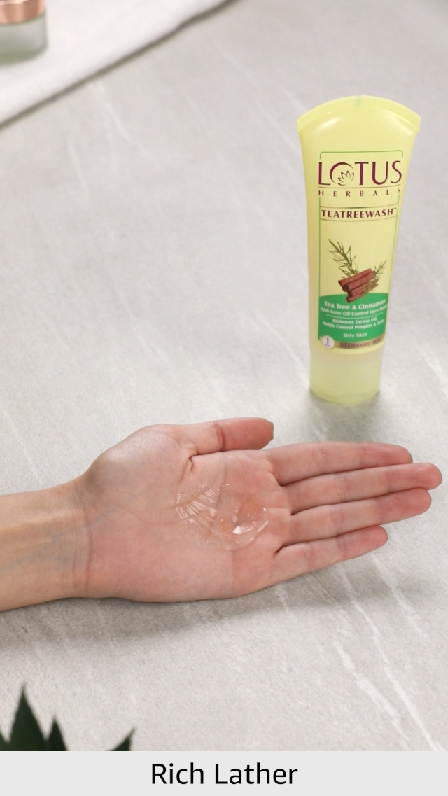 Say Goodbye to Annoying AcneTea Tree & Cinnamon Anti-acne Oil Control Face Wash from Lotus Herbals is a blessing for those with oily skin. Formulated using natural ingredients this face wash gentle removes dirt grim & oil while regulating the production of sebum (oil) in the skin. It reduces acne lesions and control pimples leaving you with natural blemish& acne free skin!Tea Tree oil Tea Tree Oil has strong antifungal & anti-inflammatory properties which reduced skin swelling. It penetrates deep into your skin to unclog pores and repair inflamedskin. It also helps lighten acne lesions & restore natural oil balance to your skin. CinnamonCinnamon is a natural cleanser which removes dead skin cells and restores natural shine to your skin. It improvesblood circulation making your skin look and feel younger. Oak Bark Oak Bark has astringent properties to soothe acne inflamedskin. It is effective in reducing the appearance of acne scars & blemishes.