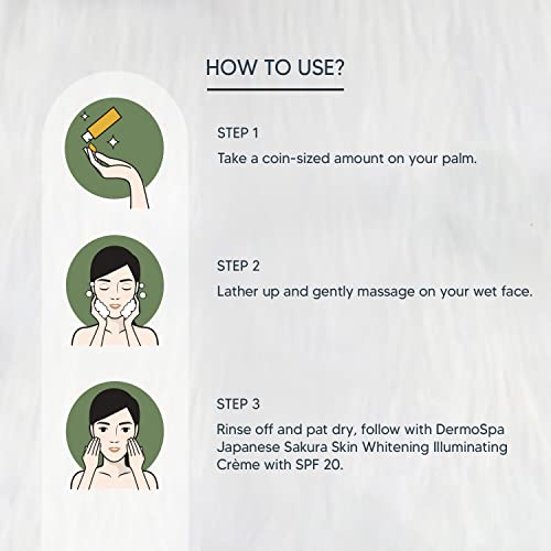 Dermospa Japanese sakura skin whitening face wash is infused with potent organic ingredients native of japan that deeply cleanse the skin and prevent melanin production. Japanese sakura and white mulberry extracts provide a unique potent formula that enhances skin whitening and lightening.