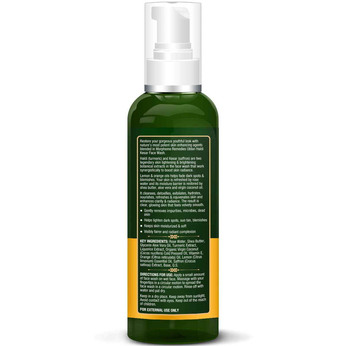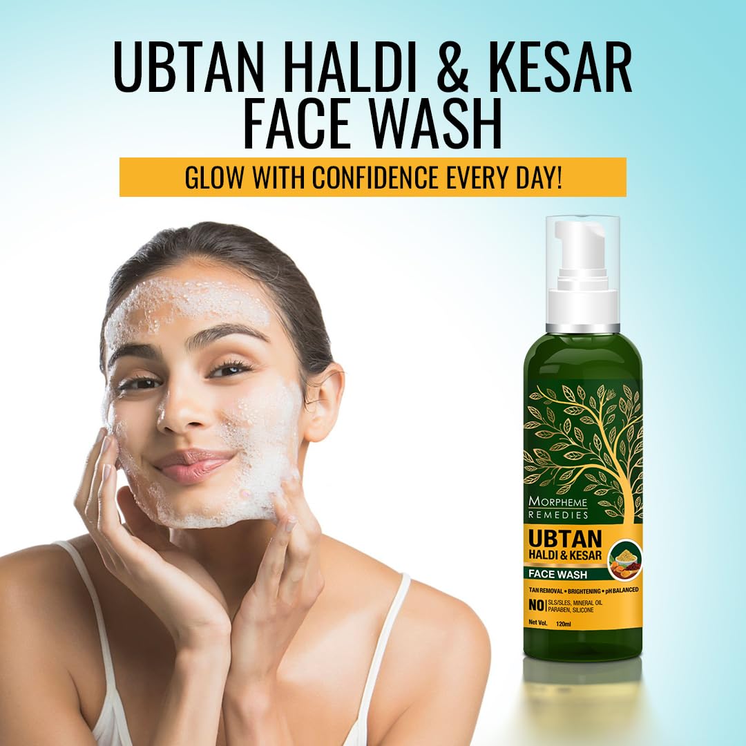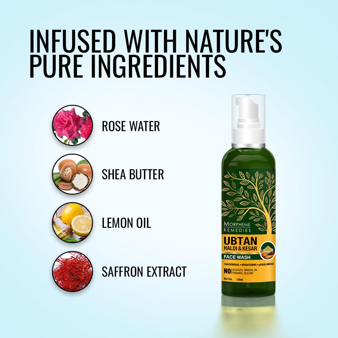 Morpheme Remedies Ubtan Haldi Kesar Face Wash With Rose Water - No Sls/Sulphate Paraben 120 ml (MORPH852)