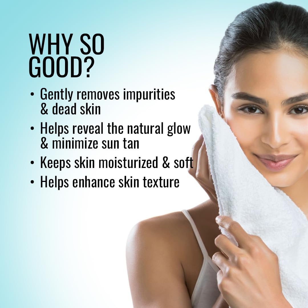 Helps to Remove Tan:The combined effects of dead skin removal and skin brightening help in fading blemishes thereby helping in evening out the skin tone and revealing the natural clearer complexion.
