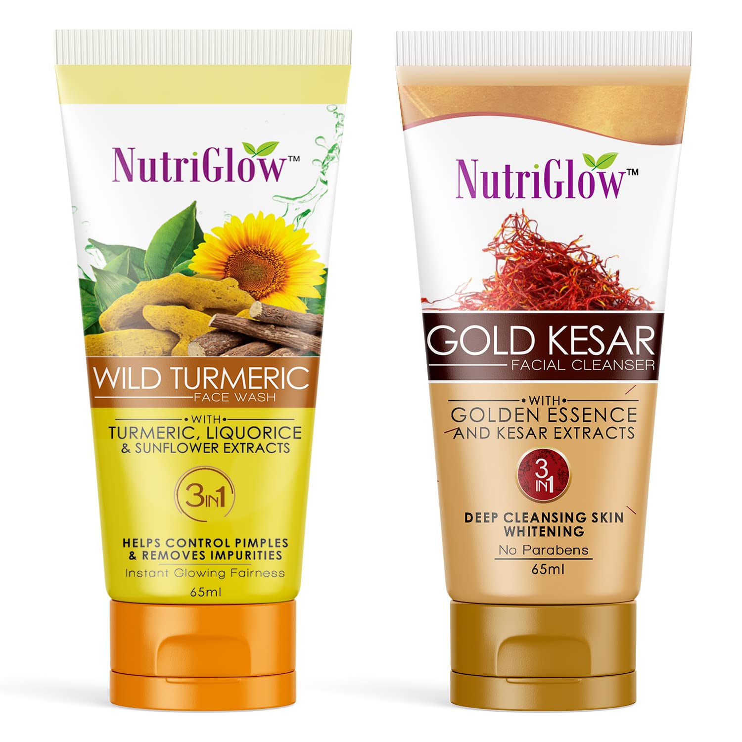Face Wash Combo/Gold Kesar and Wild Turmeric Face Wash/Cleansing/Pimple Free (Gold Kesar Face Wash + Wild Turmeric Face Wash) 1x65ml + 1x65ml