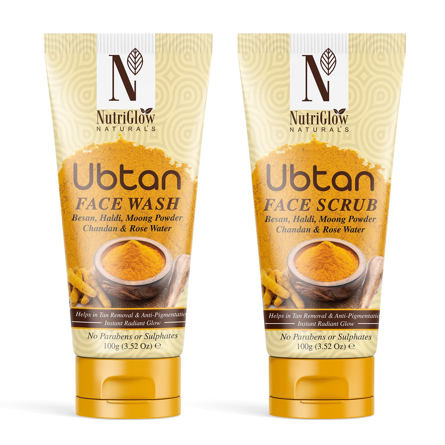 NutriGlow NATURAL'S Ubtan Face Wash (100g) Face Scrub (100g) Set of 2 for Tan-Free Skin