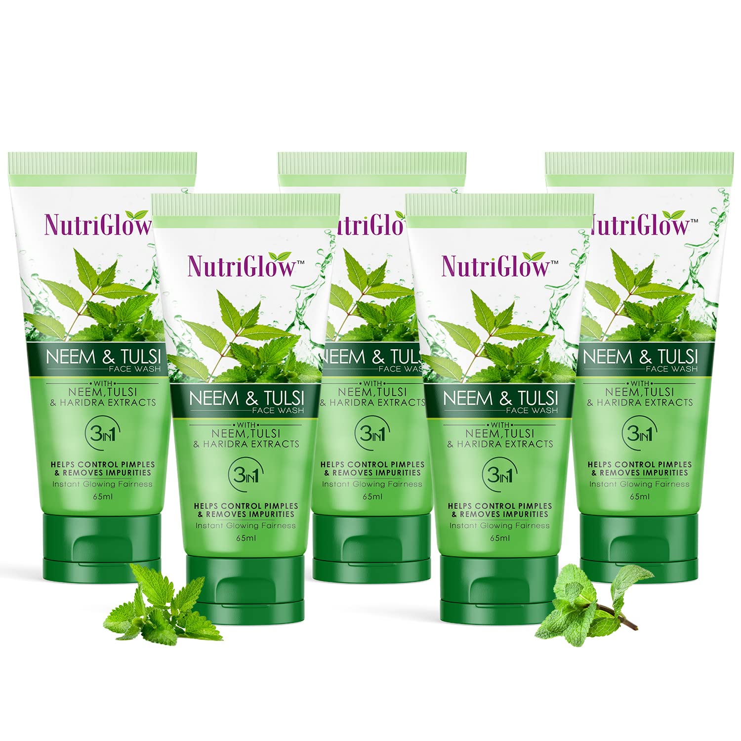 NutriGlow Neem & Tulsi Face Wash For Oily & Pimple Prone Skin Gentle Moisturizing Non Foaming Face Wash Paraben and Sulphate Free 65ml Each Pack of 5