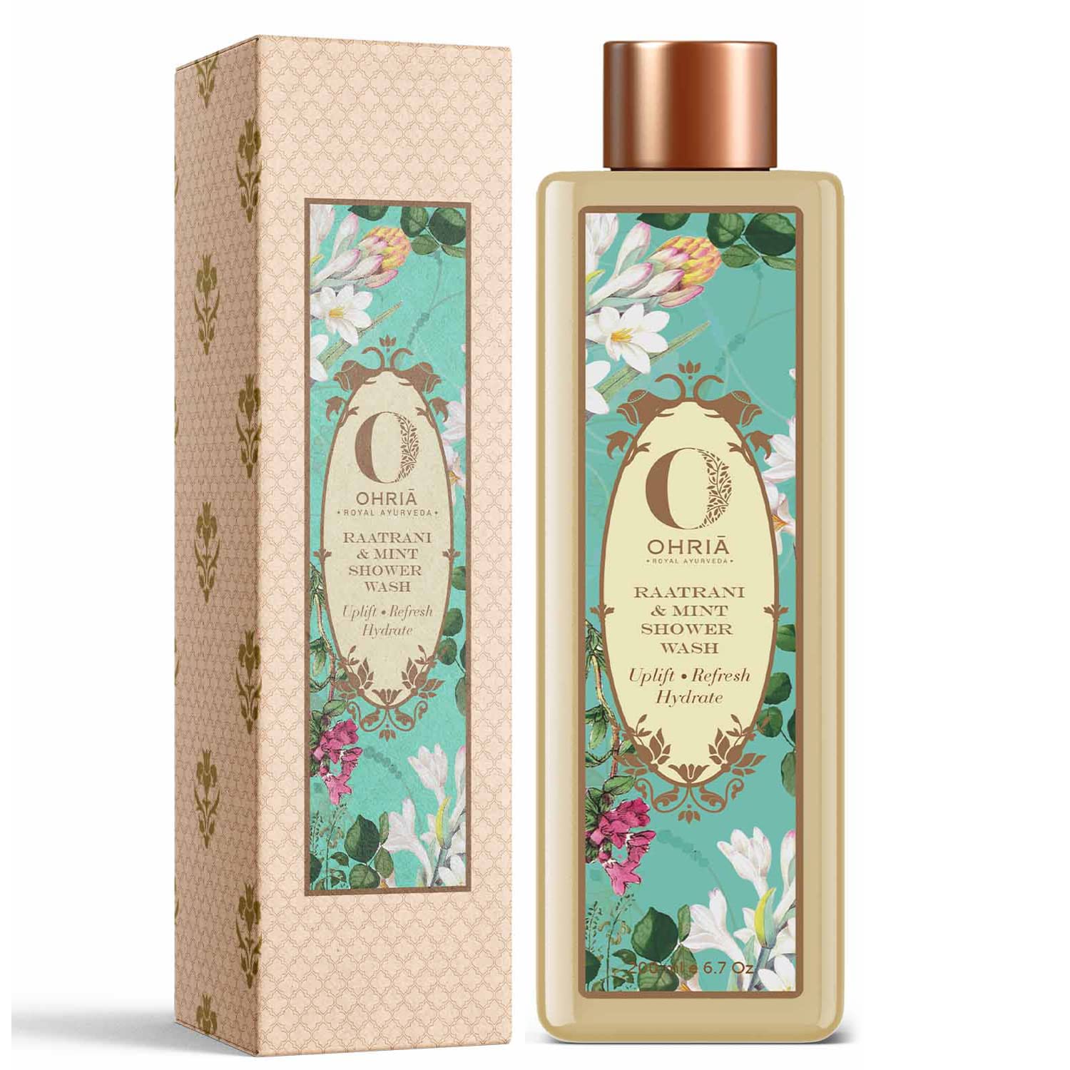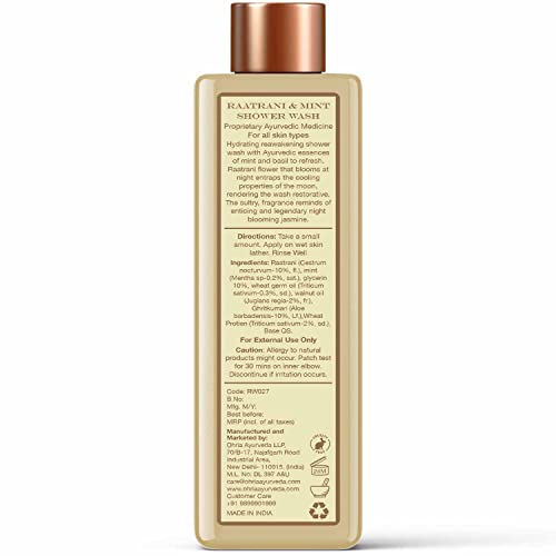 Ohria Ayurveda Raatrani & Mint Shower Wash | Refreshing & Hydrating with Aloe Vera, Glycerin & Coconut Derivatives | For All Skin Types | Mild Daily Cleanser