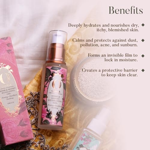 Deeply Hydrates revitalizes soothes dry & itchy blemished skin. Rose & Marigold Floral waters nourish & strengthen elasticity while honey softens. Forms a protective nourishing layer as it is pure soft light transparent & breathable product. Gentle & hydrating for under eye area. Protects against white heads and blackheads.