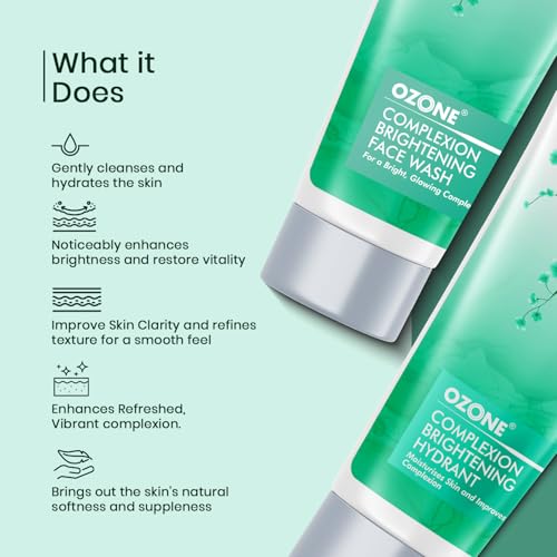 Ozone Complexion Brightening Face Wash provides deep cleansing toning and firming of the tired and fatigued facial skin. It diminishes the appearance of dark spots and discoloration & promotes skin's firmness and elasticity making it look vibrant refreshed and radiant. The Indian skin is quite vulnerable to tanning and pigmentation. This issues not just make the face look dark but also offer it a dull appearance. Ozone has formulated the perfect complexion brightening face wash targeting these issues. This face wash renders a fairer and brighter skin tone by working specifically on the problematic areas of the skin. The complexion brightening face wash has been formulated with the perfect blend of organic ingredients like neem aloe vera and lemon. It works to diminish those nasty dark spots and promoting healthy and fresh facial skin. Hydration is to the skin what water is to the body. Enriched with the antimicrobial lightening and antioxidant goodness of organic ingredients like Licorice Lemon extract and Aloe Vera; this treatment hydrant works on brightening the natural complexion. Licorice is miraculous in treating hyper-pigmentation and dark spots by inhibiting the excess production of melanin while the lemon extracts diminish the appearance of scars and spots. Aloe Vera with its moisturizing and replenishing effects permeates deep hydration into the skin layers.