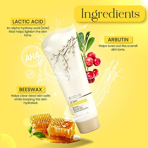 Ozone D-Tan Face Wash | Enriched with Arbutin, Bees Wax & Lactic Acid | Detan Face Wash For Men & Women | All Skin Types, Tan Removal, Deep Cleansing & Healthy Skin | 100ml