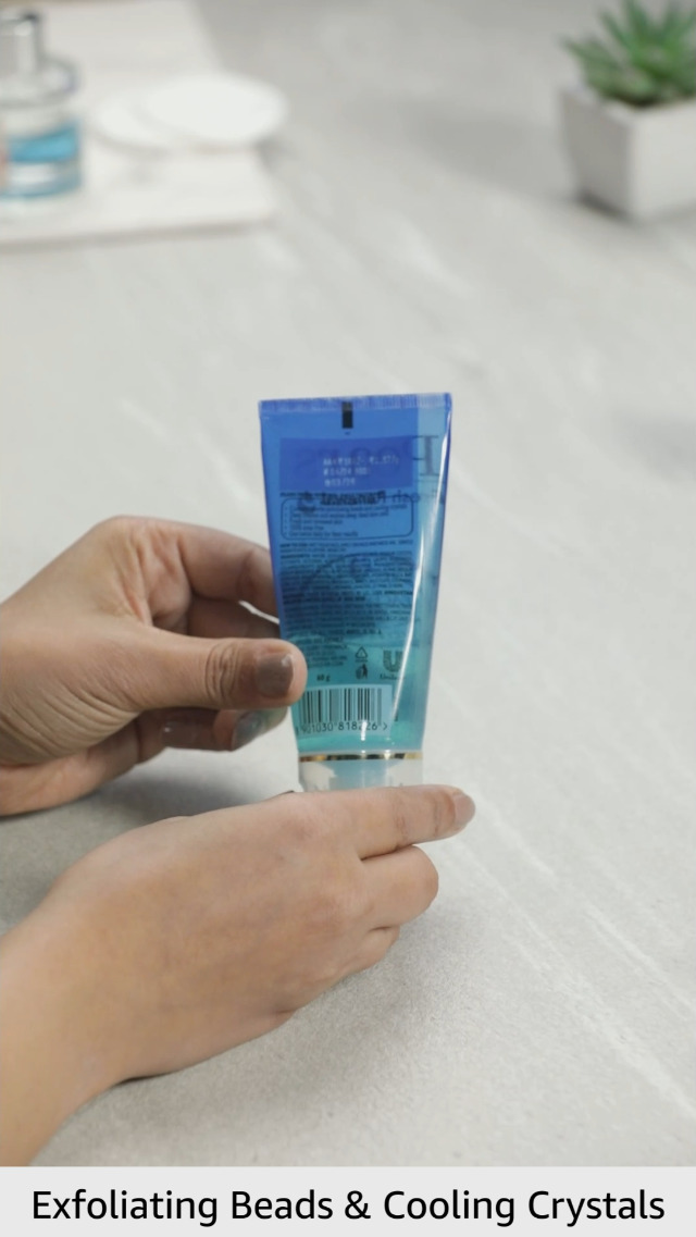 • Contains gentle exfoliating beads and cooling crystals