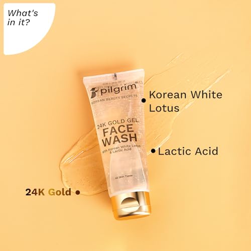 HomeHealth & PersonalSkin CareFace CareFacewash & CleanserPilgrim 24k Gold Gel Facewash with Korean White Lotus & Lactic Acid 80ml | Face wash for glowing skin | Reduce dark spot and improves skin texture | Removes dullness | For All Skin Types I For Women and Men