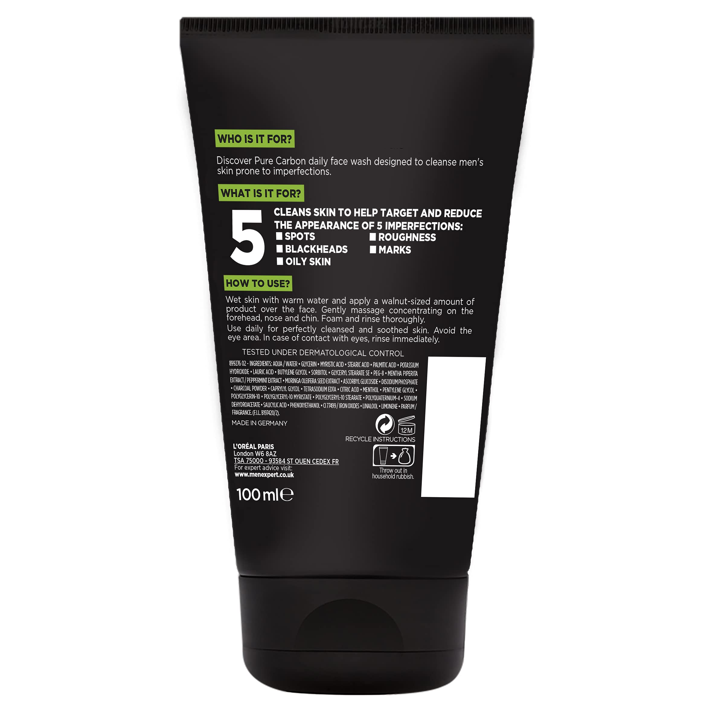 Discover pure charcoal daily face Wash designed to cleanse Men's skin prone to imperfections. Cleans skin to help target and reduce the appearance of 5 imperfections: - spots - blackheads - oily skin - roughness - marks wet skin with warm water and apply a walnut-sized amount of product over the face. Gently massage concentrating on the forehead nose and chin. Foam and rinse thoroughly. Use daily for perfectly cleansed and soothed skin. Avoid the eye area. In case of contact with eyes rinse immediately.