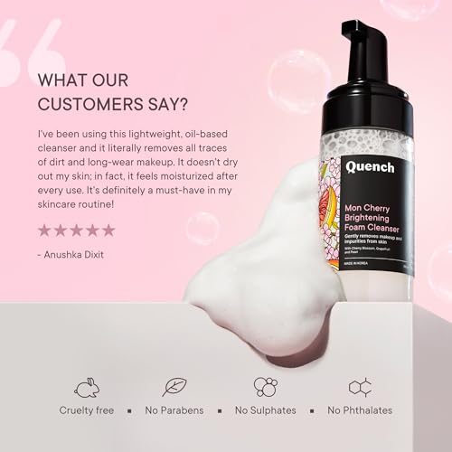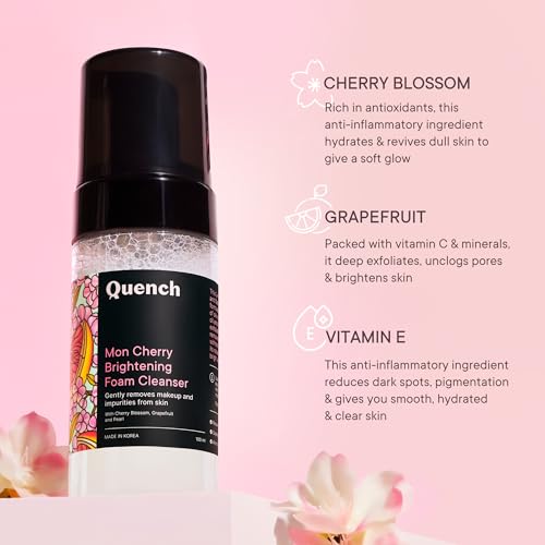 Quench Brightening Foam Cleanser with Cherry Blossom Radiance | Korean Face Wash for Glowing Skin | Removes Makeup, Dirt & Impurities | Brightens Dull Skin | Made in Korea (100ml)