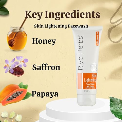 RIYOHERBS skin lightening face wash is enriched with the goodness of natural fruits extracts which helps remove unwanted tanning helps reduce blemishes and pigmented skin with regular use. Papaya enzymes help in reducing dark spots improves complexion and adds radiance to your skin.Why choose Riyoherbs Skin Lightening Facewash?Deep cleansingLightens skin tone & dark spots.Cures hyperpigmentation & blemishes.Removes unwanted tanning.Leaves radiant & glowing skin.HOW TO USE:-Wet your face and take a small amount of face wash gel. Massage in a circular motion and rinse it off with plenty of water. Use twice a day for best results.INGRIDIENTS:-Purified Water Coco Glucoside Decyl Glucoside Cocamidopropyl Betaine Glycerin Guar Gum Benzyl Alcohol Moringa Extract Papaya Extract Citric Acid Potassium Sorbate Sodium Benzoate Saffron Extract Honey. Net Vol-100ml.