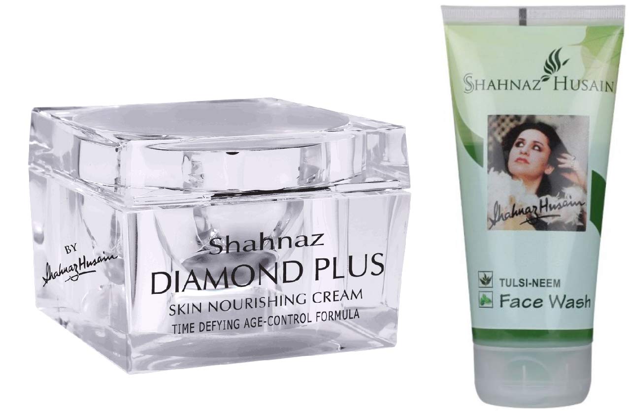 Shahnaz Husain Diamond Plus Skin Nourishing Cream is the ultimate in skin nourishment. The formulation is specially enhanced by advanced techniques. It helps to strengthen the supportive tissues improving skin elasticity and making the skin firm and supple. Ash of Diamond has been reinforced with organic extracts of vetiver date shea butter tomato olive oil and Vitamin-E to nourish and the skin powerfully. Leaves the skin clear radiant and youthful. Tulsi Neem Face Wash is a -free Ayurvedic face wash which has been specially designed to cleanse impurities and restore the natural balance. It contains plant extracts of neem lemon peel tulsi and aloe vera juice.