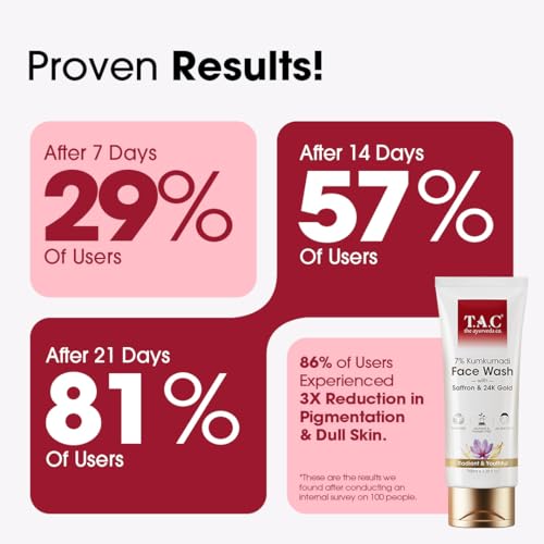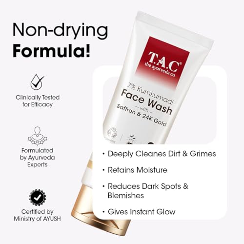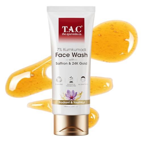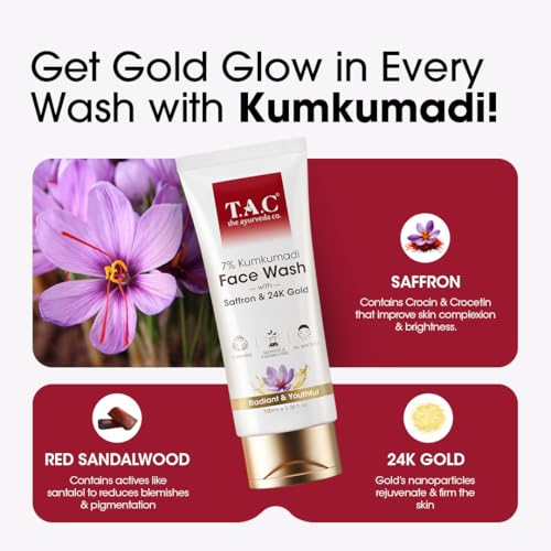 TAC Saffron & 24K Gold Kumkumadi Face Wash | Brightening & Pigmentation Control | Oil Control| Instant Glow, Non-Drying Formula | For Dull & All Skin Types | 100gm