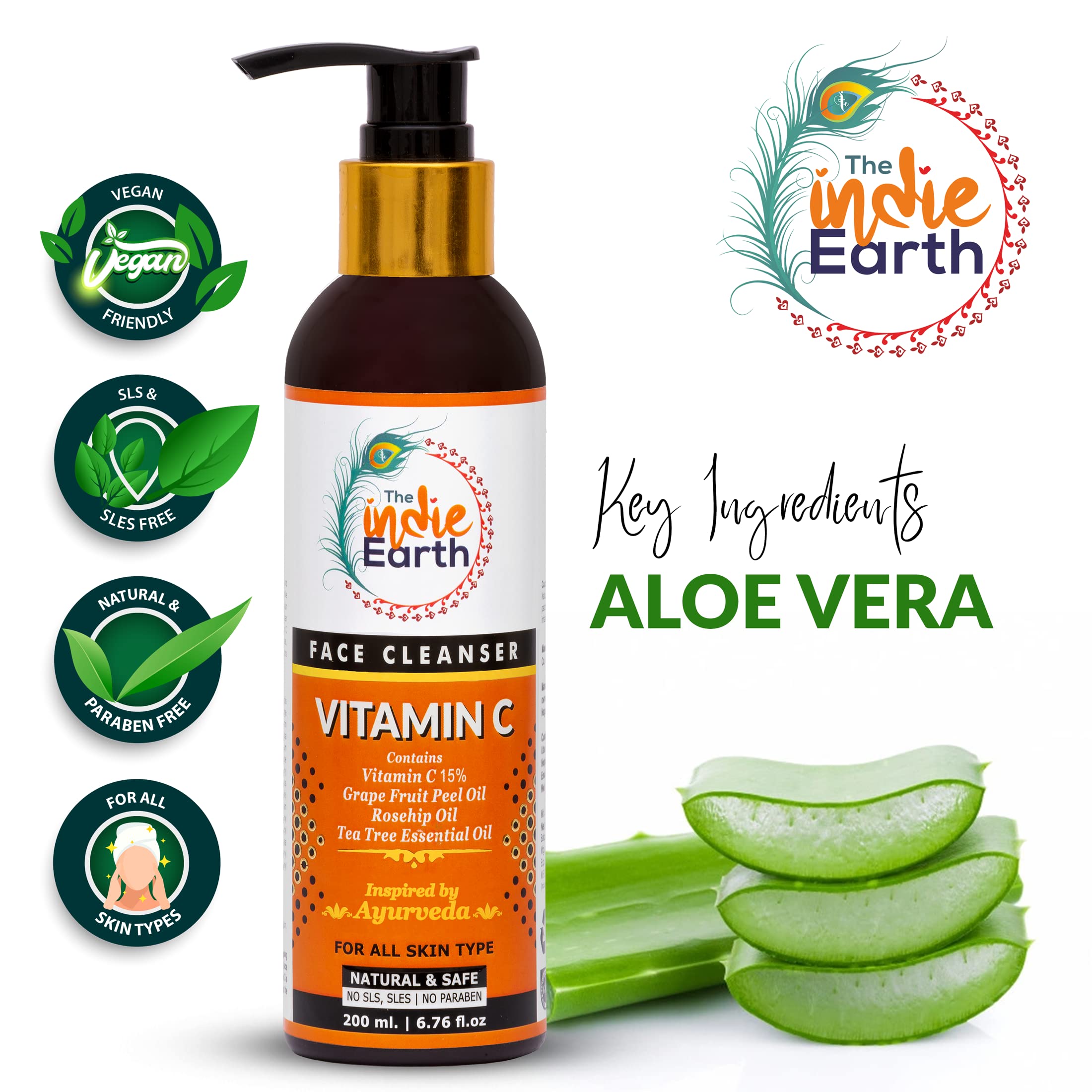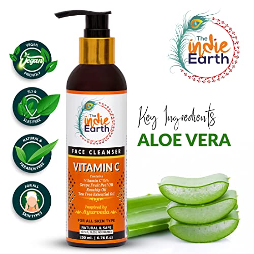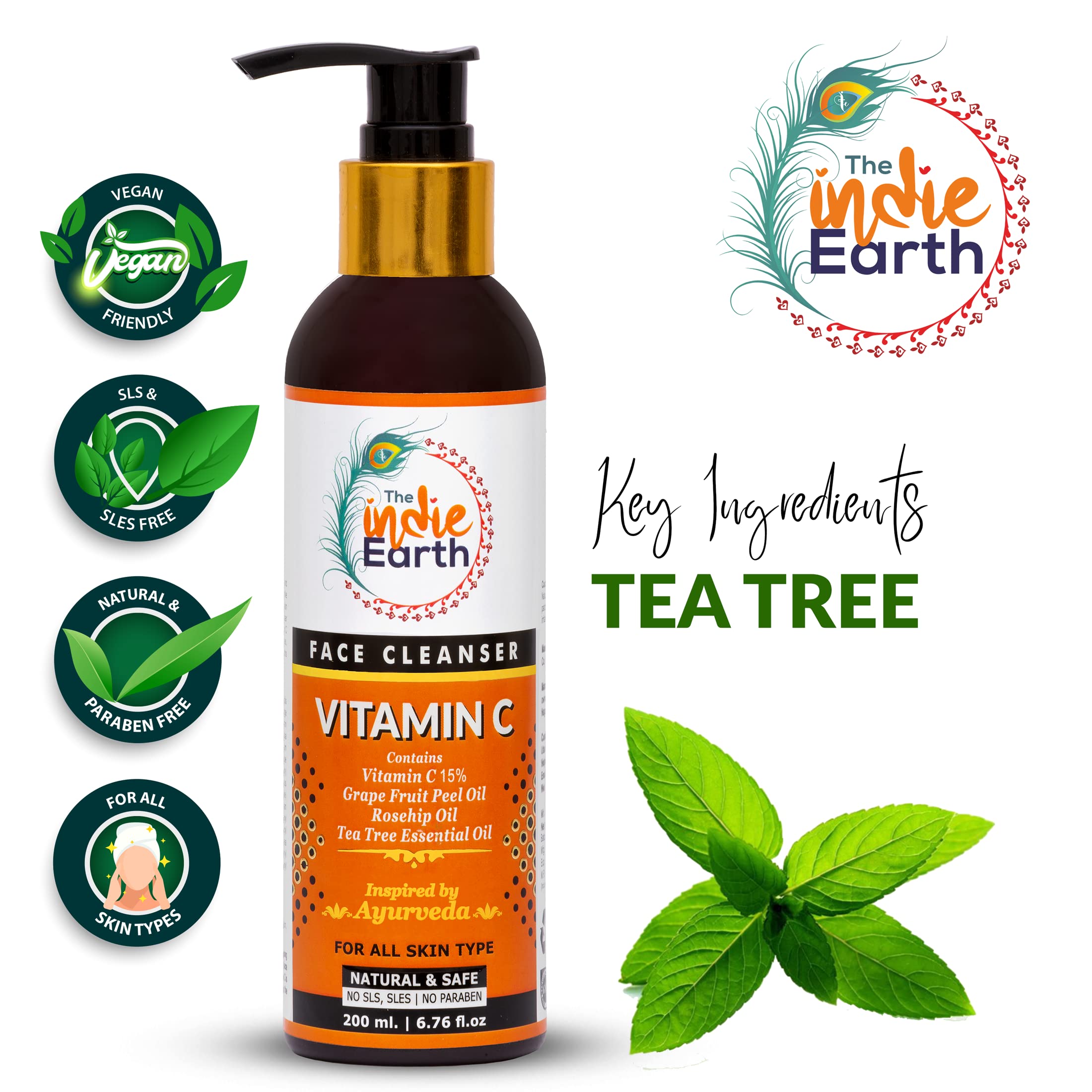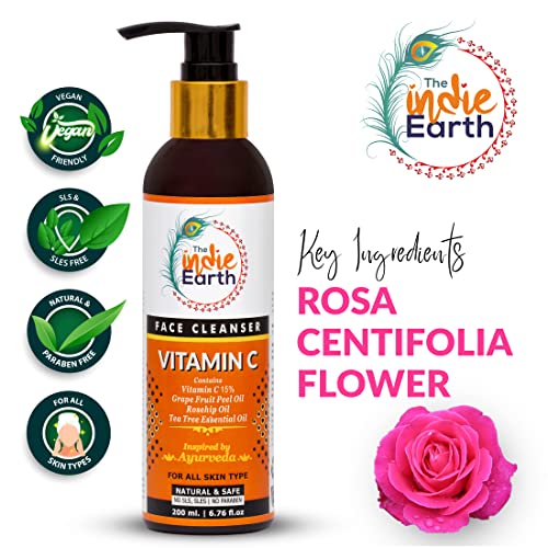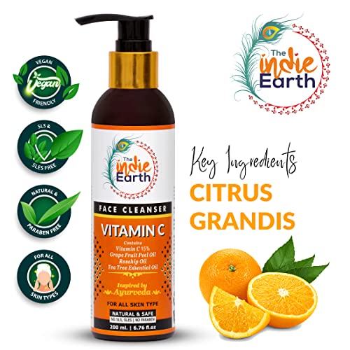 The Indie Earth Vitamin C Face Cleanser with Vitamin C 15%, Grape Fruit Peel Oil, Rosehip Oil, Tea Tree Essential Oil 200 ml