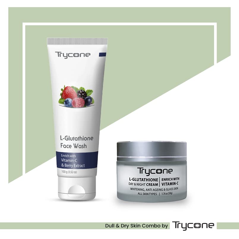 TRYCONE L-GLutathione & Vitamin C Face wash & Cream combo for Dull & Dry Skin - Pack of 2 Products