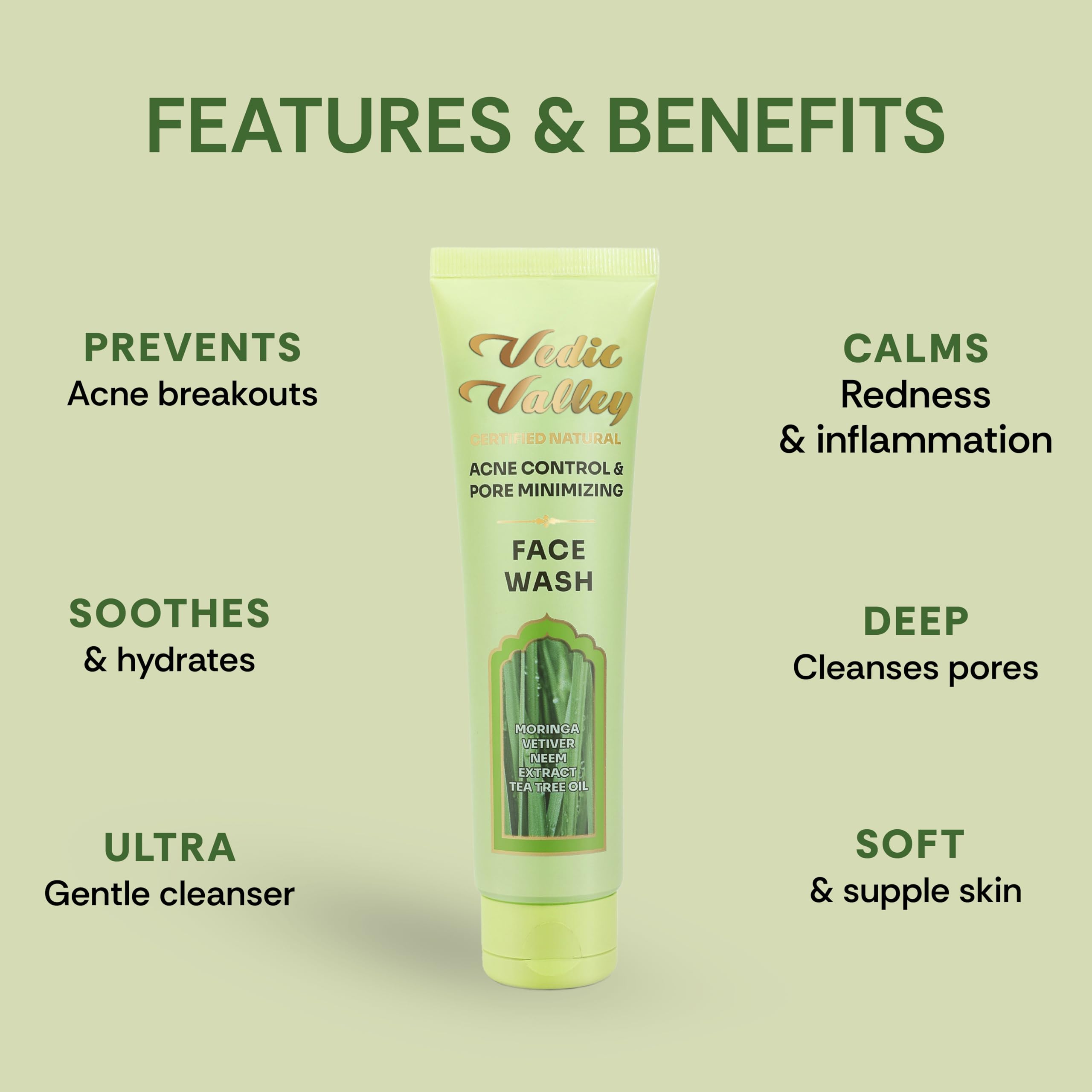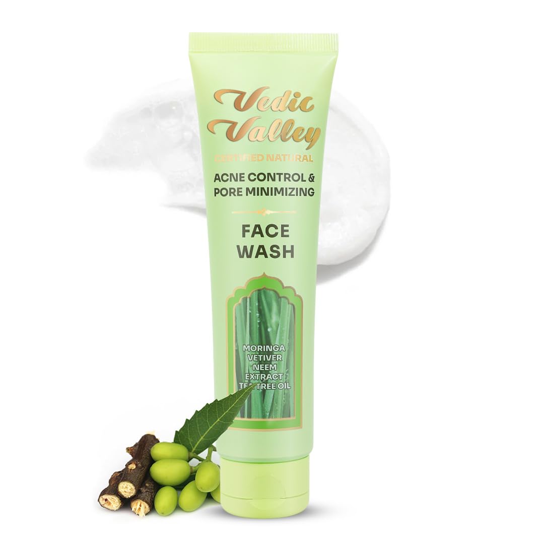 Vedic Valley Face Wash - Acne Control & Pore Minimizing - Moringa & Vetiver Extract - Cleans skin and Even skin tone 100 g