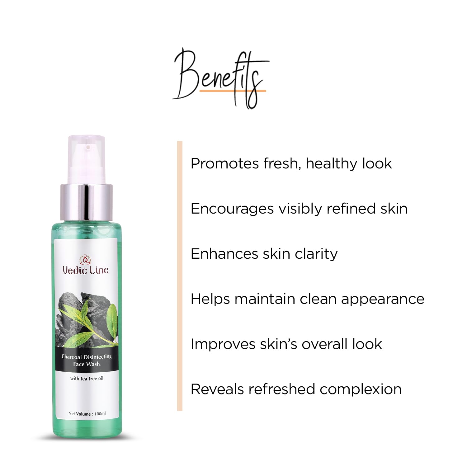 Vedicline Charcoal Disinfecting Face Wash Reduce Acne Excess Oil & Impurities With Charcoal Powder Tea Tree Oil For Deep Cleansing 100ml