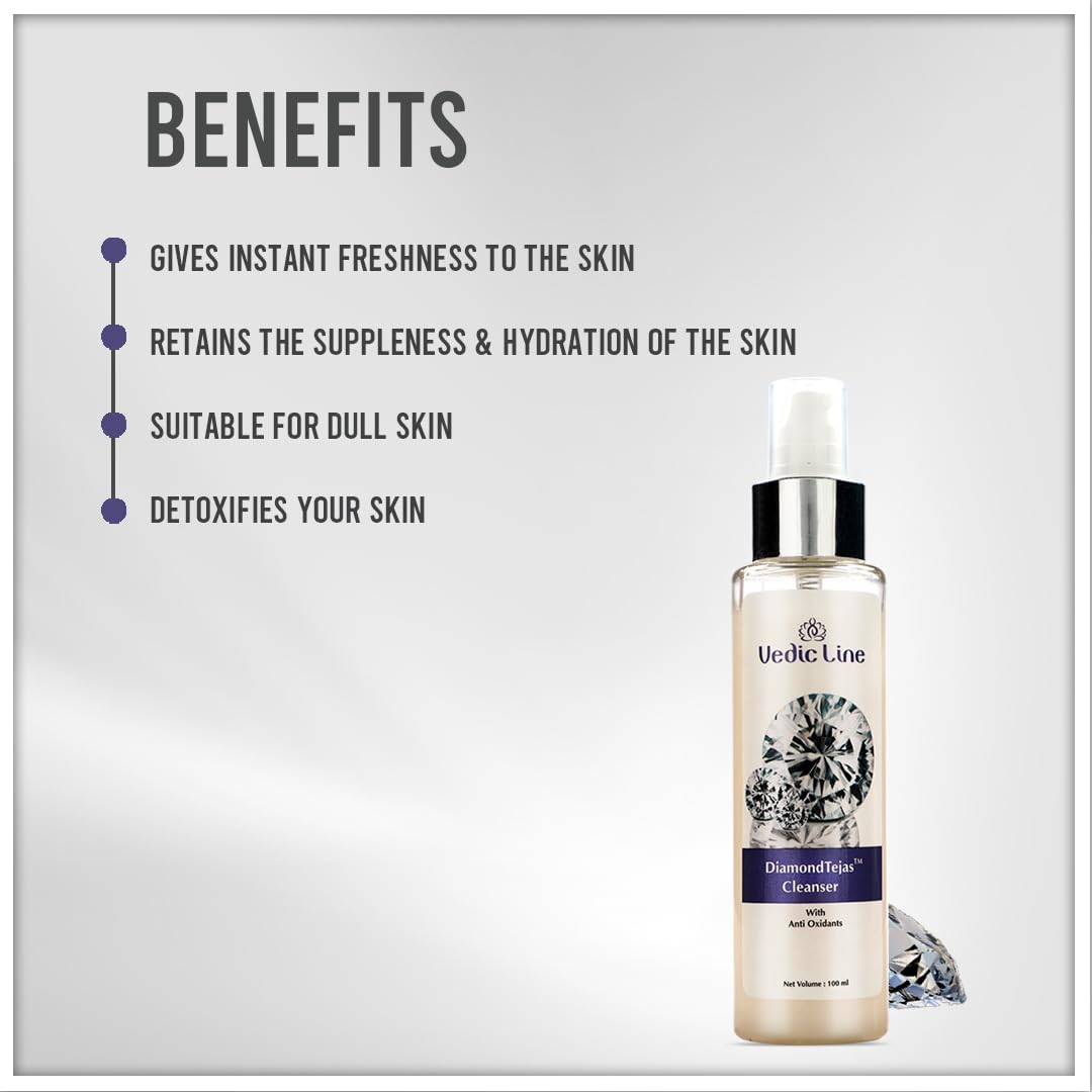 Vedicline Diamond Tejas Cleanser Fades Dark Spots Wrinkle & Fine Lines With Diamond Bhasma For Glowing Skin 100ml
