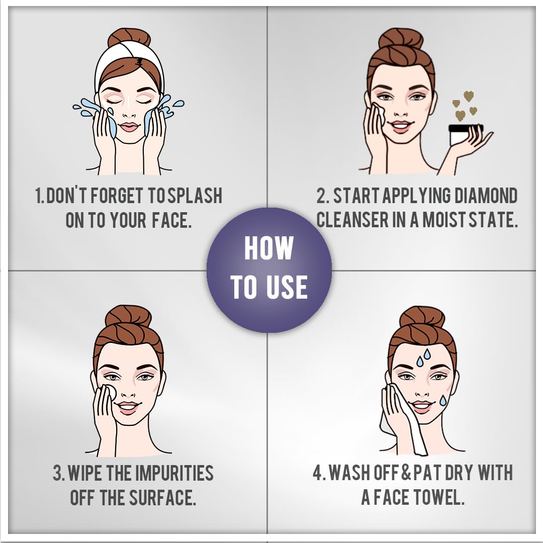 This diamond face cleanser helps in stopg future sun damage and dark spots as well as the improvement of new skin tissue and collagen synthesis all of which are necessary for maintaining youthful skin.