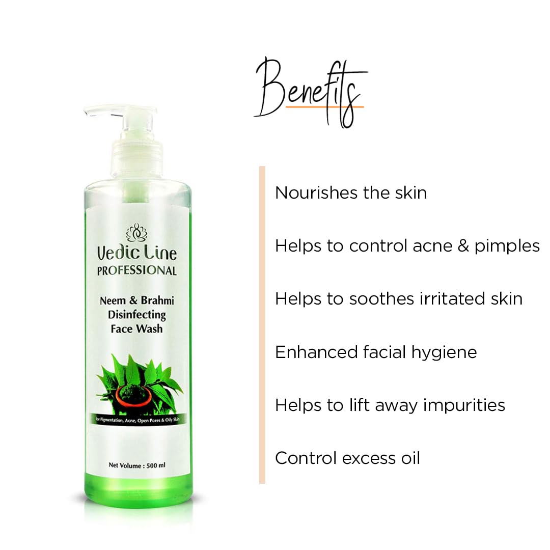 Vedicline Neem & Brahmi Disinfecting Face Wash Minimize Pigmentation Acne Open Pores & Oily skin For Fresh Looking Skin 500ml