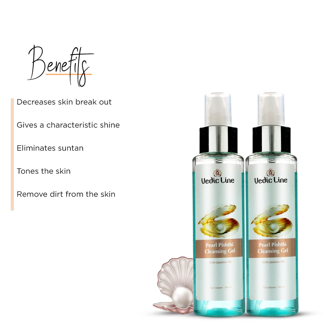 Vedic Line Pearl Pishthi Cleansing Gel is the best pearl face wash with Pearl Powder & Jasmine Oil. This is the professional best cleansing gel for the face in India to help clean the skin gently within. It o helps to keep the skin shiny taut & young-looking always. Pearl face wash removes dirt and stimulates skin cells Opens and cleans the clogged pores Gives a fresh glowing face. With the goodness of pearl powder letâs focus on its benefits. With regards to the skin pearl powder has numerous advantageous properties. Probably the most extraordinary fixing it has both internal and external benefits for the skin and body. Coming up next are the advantages of pearl for skin: Gives strength to the elasticity of the skin prevents collagen depletion stimulate fibroblasts in the body and leaves the skin smooth & soft Jasmine oil is an essential oil derived from the white flowers of the common jasmine plant. Itâs great for dry skin provides anti-ageing benefits perfect for skin moisturizing helps to heal scars even skin tone and many more skin benefits. Purge restore and seyour face with the force and brightness of natureâs ideal. Ideal for the way of life. This is one of the best skin care products. Pearl pishthi cleansing gel is the perfect cleanser for the perfect skin. Vedicline products are cruelty-free and vegan and do not contain parabens SLS/SLES mineral oils and phthalates. Thus they are free for regular use and they o donât have any side effects if used as directed.