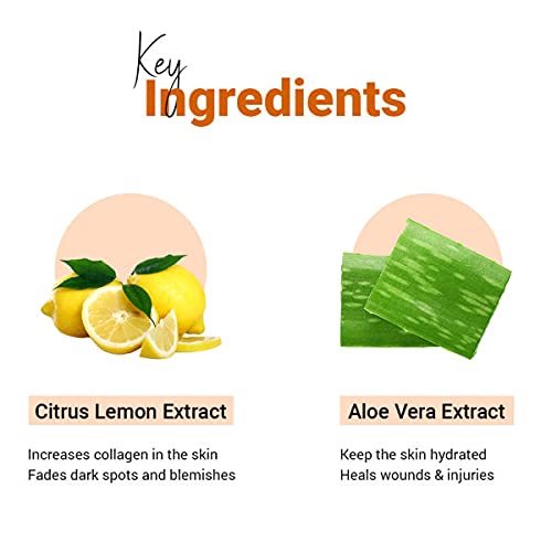 • Enriched with Citrus Lemon Extract: This increases collagen in the skin and helps in the of dark spots and blemishes as well as Aloe Vera extract which keeps the skin nourished Revives scars.