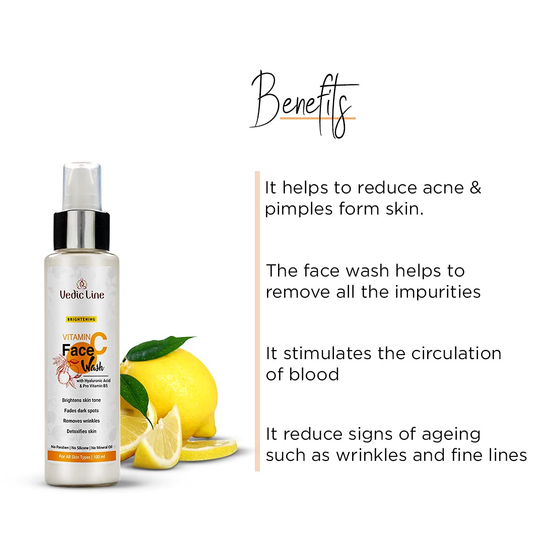 • With strong ingredients such as Vitamin C this vitamin c face wash is effective in eliminating all types of skin problems including tan dirt and pollutants.
