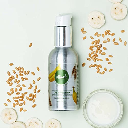 Say No to Dryness. Vilvah's Moisture Cream Face Wash is made with mild biodegradable and plant-based natural foaming cleansers. It creates a mild lather that removes daily impurities without drying the skin. The highest quality banana extract with potassium and Vitamin A improves skin texture and restores skin's moisture barrier. The skin-firming wheat protein makes skin soft supple and brings back skin's natural radiance.