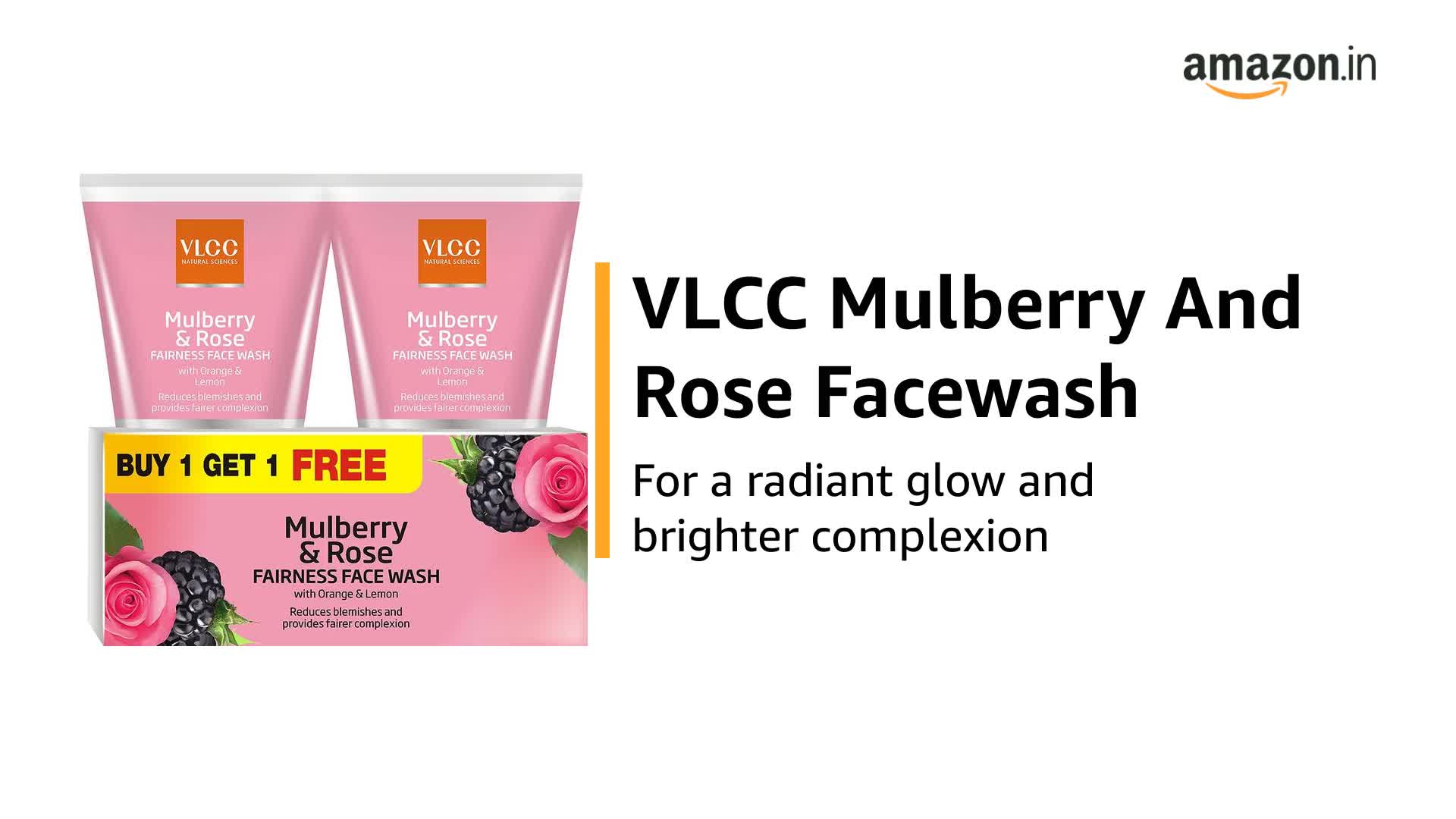 VLCC Mulberry & Rose Facewash - 150ml X 2 | Buy One Get One (300ml) | For Visible Glow and Fairness | With Rose, Mulberry, Orange & Lemon Peel Extract.