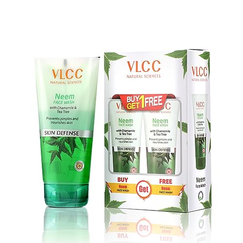 VLCC Neem Face Wash - 150ml X 2 | Buy One Get One (300ml) | Fights Acne, and Pimples | Soothe Skin Inflammation and Irritation | With Neem, Chamomile, Tea Tree, Eucalyptus & Carrot seed.