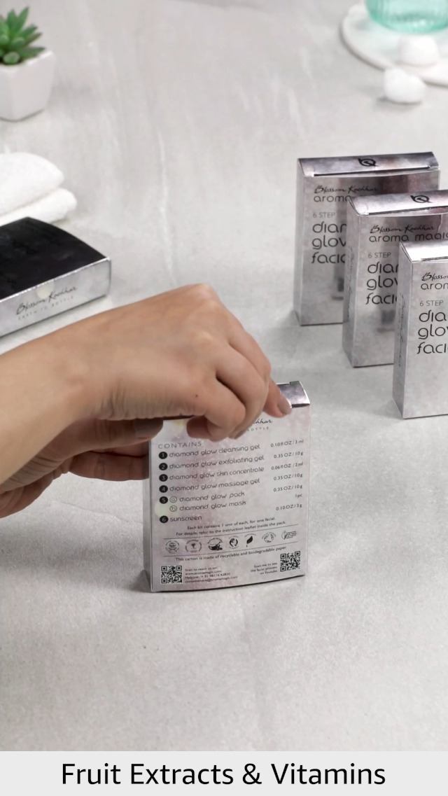 I have formulated this 6 step facial to restore softness smoothness resilience and radiance. The unique ingredients give the skin renewed energy and leaves your client; super skin revitalised and rejuvenated. - Dr. Blossom kochhar vital information: duration - 55 minutes frequency - once in 15 days equipment to use: galvanic machine Step1 diamond glow cleansing gel step 2 diamond glow exfoliating gel step 3 diamond glow skin concentrate step 4 diamond glow massage gel step 5 (a) diamond glow pack net (b) diamond glow mask step 6 sunscreen.