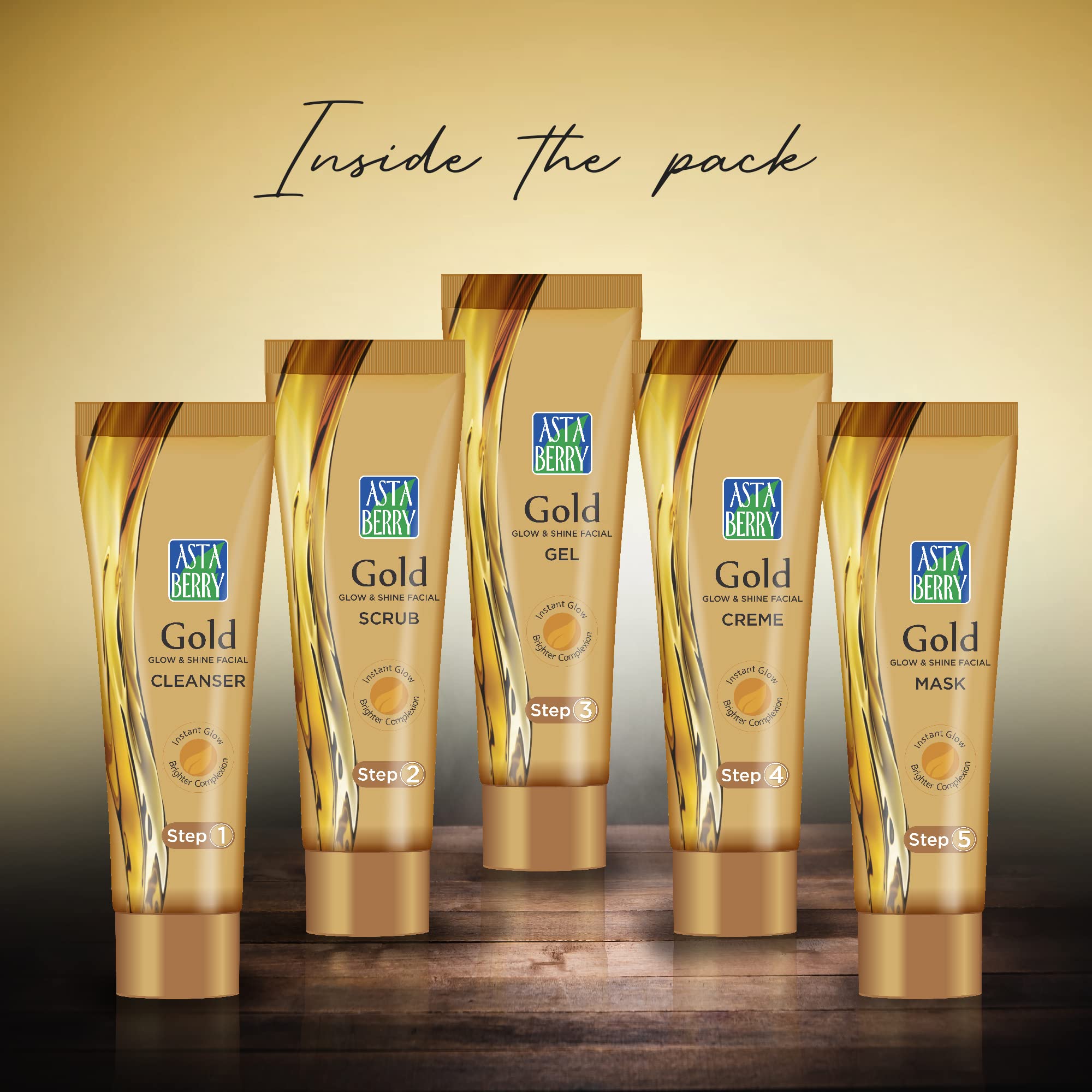 The gold facial kit brings glow and radiance to your skin and offers the best skincare. In just four steps you get instant results and your pigmentation and blemishes get cleansed. The skin brightening facial kit removes blackheads and exfoliates your skin thoroughly. It is best suited for normal or oily and sensitive skin. Your skin will become firmer and tighter and will have increased elasticity. The gold facial kit will reduce irritation and rashes on your skin. The face glow facial kit gives your skin an everlasting glow and has a nice fragrance. Your skin will become brighter and whiter. All the tubes contain gold dust for youthful looks and shine. How to Use:- 1. Wash your face and neck thoroughly with a cleanser and wipe dry. 2. Apply Scrub and massage for 5-7 mins. with fingertips in anticlockwise motion to remove dead skin. 3. Massage with gel on the face for 2 mins then wipe with a wet towel. 4. Let the skin cool for 2 mins. Then apply creme. Massage for 7-10 Min. Clear excess creme. 5. Apply the thick layer of mask on the face and leave for 8-10 min. Until semi-solid. Wash Off Benefits 1. Whitened skin 2. Glowing skin 3. Frangrance 4. Removed blackheads 5. Removed blemishes