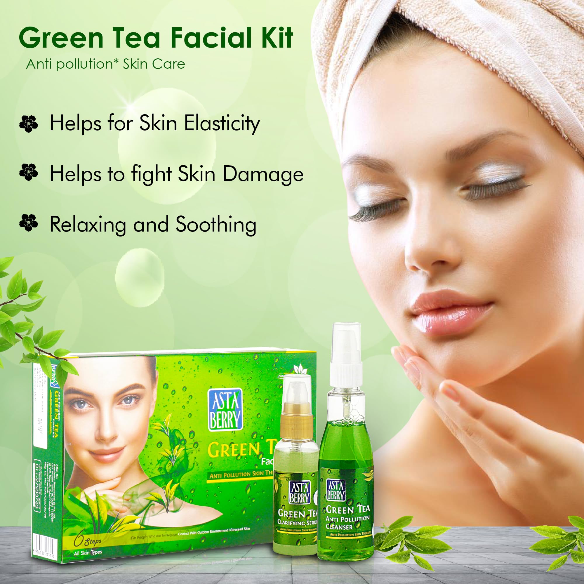 HomeHealth & PersonalSkin CareFace CareFacial KitAstaberry Green Tea Facial Kit 6 Steps For All Skin Types - Anti Pollution Skin Care | Skin elasticity | Fights skin damage & Relaxing and Soothing | With Neem & Olive