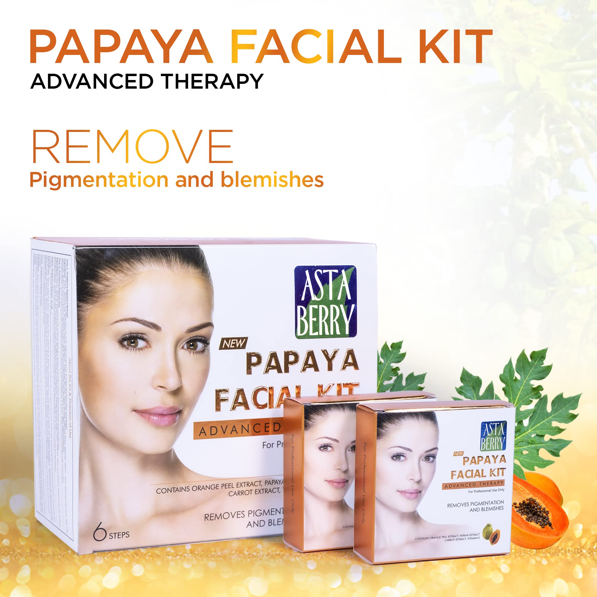 • BENEFITS OF ASTABERRY PAPAYA FACIAL KIT: Remove blemishes dark spots acne marks and sunspots from your face. This mini facial kit evens your skin tone so you look young beautiful and radiant.