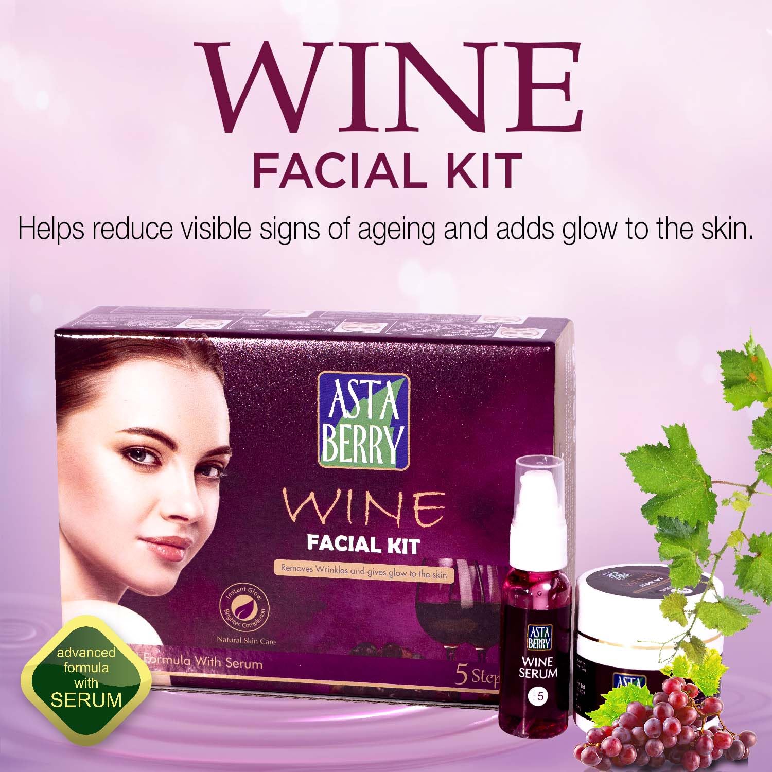 Astaberry Wine Facial Kit Medium 5 Steps with Serum For Women | Remove Wrinkles & Glowing Skin | Goodness Of Red Grape Extracts | Aloe Vera Extract & Olive Oil | For All Type Skin 270 ml