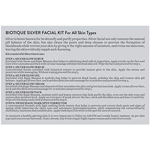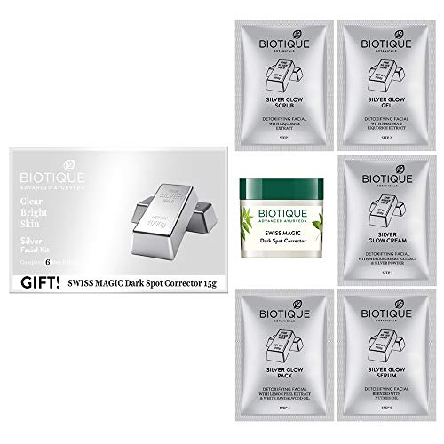 • This pack contains silver glow scrub silver glow serum silver glow gel silver glow cream silver glow and swiss magic dark spot corrector