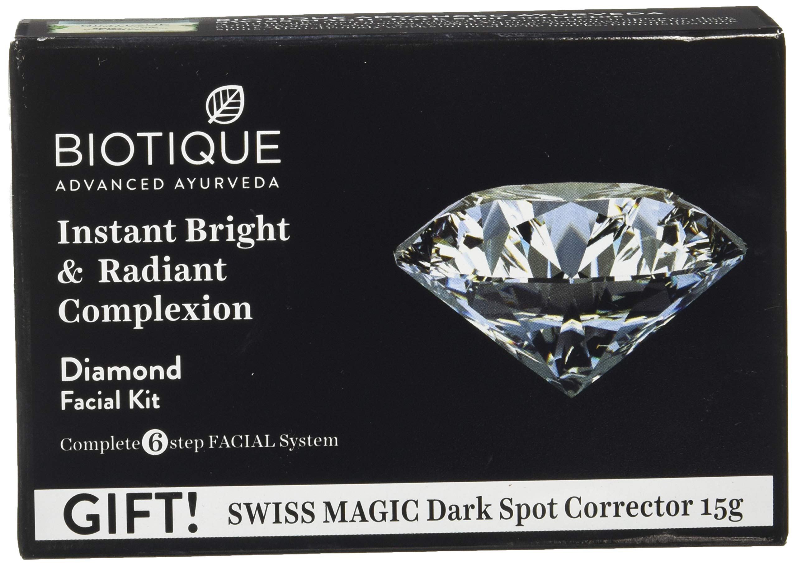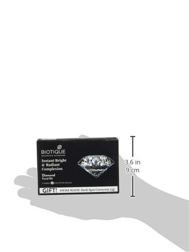 Biotique diamond facial kit with daimond bhasma kit for instant glow even better clinical dark spot corrector prescription - strength serum dark spots 58% in a 4 weeks.After 2 sessions all skin tones can expect to see a 2 - 3 visible shade improvement in dark spots.Its's gentle enough for year - round use. Works on post acne markstoo. Product details : papaya scrub saffron massage gel clove pack safforon youth dew cream