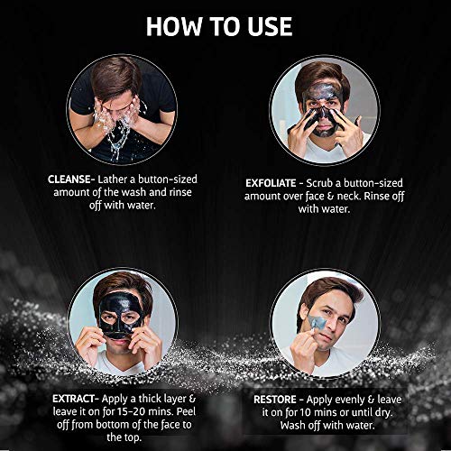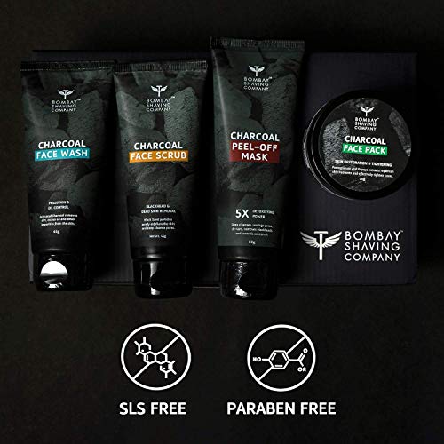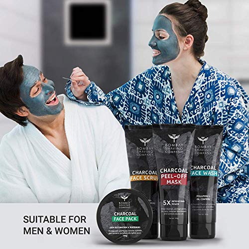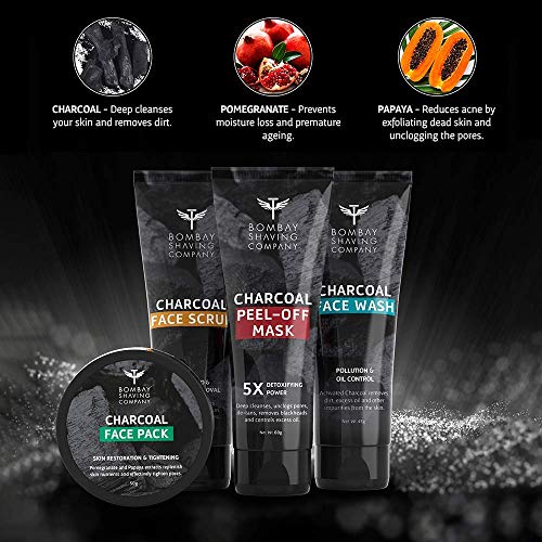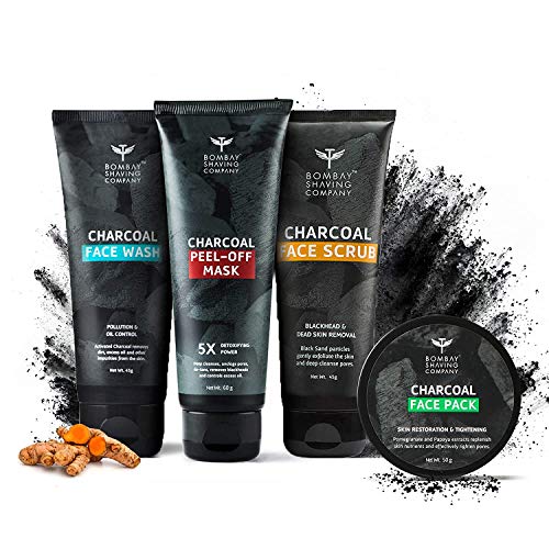 Bombay Shaving Company Facial Starter Kit for Acne Charcoal Face Wash 45 gm Charcoal Face Scrub 45 gm Charcoal Face Pack and Charcoal Peel Off Mask 60gm