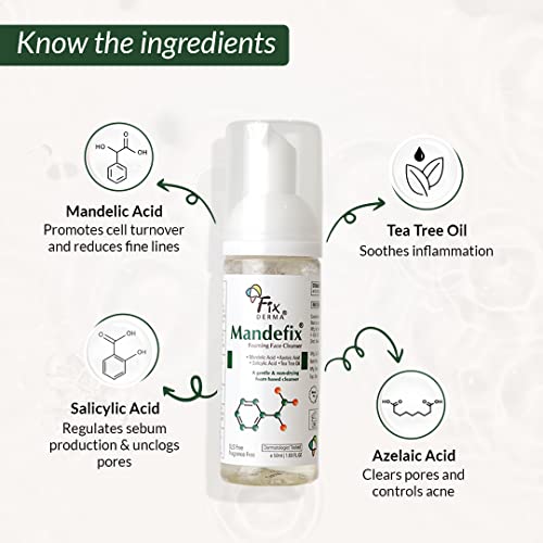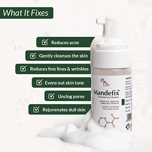 FOAMING FACE CLEANSER FOR OILY SKIN: This combo kit contains Mandefix foaming face cleanser which deeply and gently cleanses your skin without leaving it dry or tight. It gently exfoliates controls acne-causing agents and brightens the skin tone.