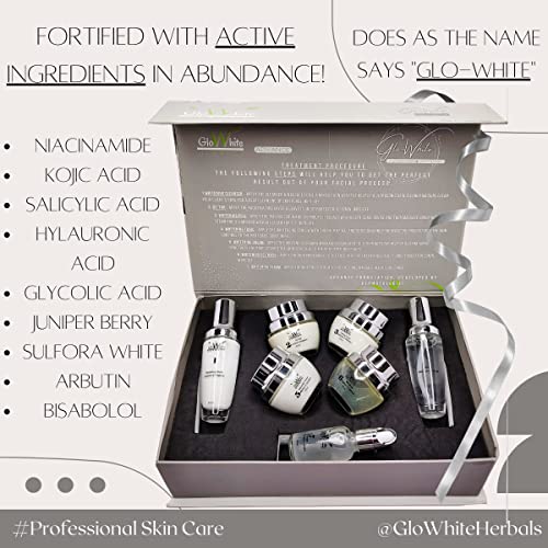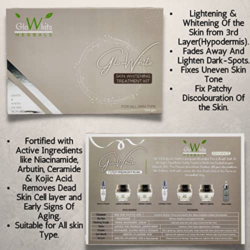GloWhite Herbals Glo-White Skin Lightening & Whitening Treatment Facial Kit For Glowing Skin 350g | Fortified With Hyaluronic Acid Niacinamide Vitamin-C & Many More Active Ingredients | For a Radiant & Bright Skin | Treats Darkness Dullness Dark-Spot & Tan
