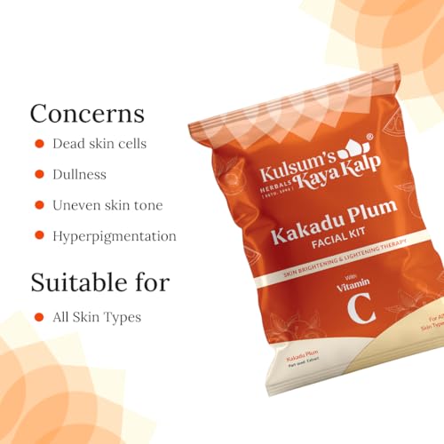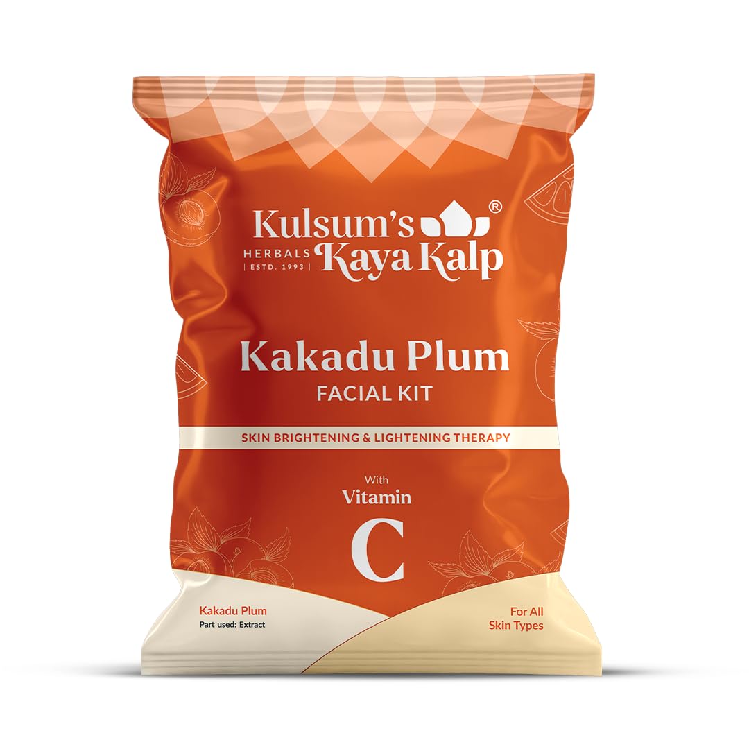 Soak in the goodness of Vitamin C with Kulsum's Kaya Kalp Herbals Kakadu Plum Facial Kit contains a set of 5 skincare products which include a cleansing lotion face scrub face gel face cream and face pack. Kakadu Plum Facial Kit is enriched with skincare products that contain Vitamin C and A from Kakadu Plum Vitamin C A & B3 from orange Vitamin C D & B6 from lemon and antioxidants Vitamin C & B from cucumber. Perfect for any day get started with Kakadu Plum Cleansing Lotion that helps exfoliate the skin gently to remove dirt dust pollutants and makeup for glowing skin. Kakadu Plum Face Scrub helps exfoliate the skin to remove dead skin cells and impurities to provide an even skin tone. Kakadu Plum Face Gel helps protect the skin from sun damage and hydrates the skin for a radiant glow. Kakadu Plum Face Cream helps provide a youthful appearance and brightens the visage. Kakadu Plum Face Pack helps tighten the skin improves skin elasticity and brightens skin tone. This facial kit for women and men is natural cruelty-free and paraben-free.