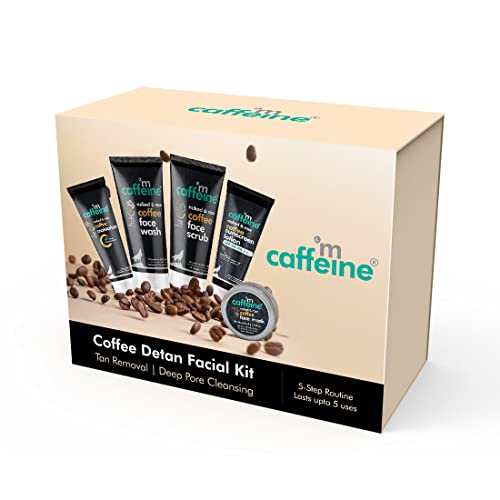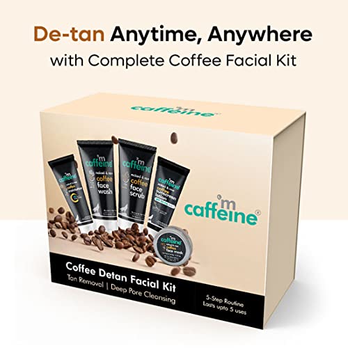 mCaffeine Coffee Detan Facial Kit - Travel Size | Value Pack of 5 Signature Face Care Products - Face Wash Face Scrub Face mask Face Moisturizer & | Ideal for Self Use & Gifting