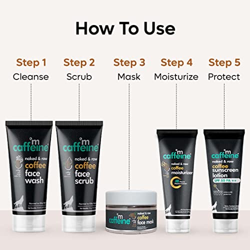 • COMPLETE COFFEE DE-TAN FOR FACE: Packed with Coffee Face Wash Coffee Face Scrub Coffee Face mask Coffee Face Moisturizer and Coffee SPF 50 which work collectively to get rid of tan and protect your skin. This 5-step easy-to-use kit is a must-have to revea