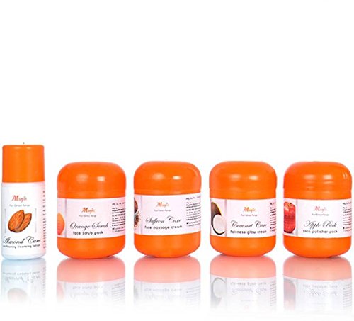 Step : 1 (Almond Care) - A non-foaming cleansing lotion which helps to remove the deep seated pollutants and dust particles from skin pores. Regular use ensures fresh and clean look. Also ideal for removing the traces of make-up. USE : Take a little on the cotton ball and clean the face and neck thoroughly. Step : 2 (Orange Scrub Pack) - A fruit based scrub pack which helps to dislodge the black-heads and also impart a glow on the skin. Ideal for normal to oily skin type. USE : Apply the scrub on a wet face rub for 3-5 min. Let it dry and clean with cold water. Step : 3 (Saffron Care) - An ayurvedic face massage formula with anti-ageing properties to maintain the elasticity & firmness and improves the skin texture. USE : Use the required cream for face massage after thorough cleansing. Step : 4 (Apple Pack) - An apple based Face pack which improves the skin texture firmness and elasticity. An ideal choice for instant glowing effect. USE : Apply the pack on the face and neck & clean after 15 minutes. Step : 5 (Coconut Care) - Based on ayurvedic formula. This cream improves the skin complexion reduces tanning effect of sun while maintaning the suppleness of the skin. USE : Apply the cream after moisturising and leave it on.