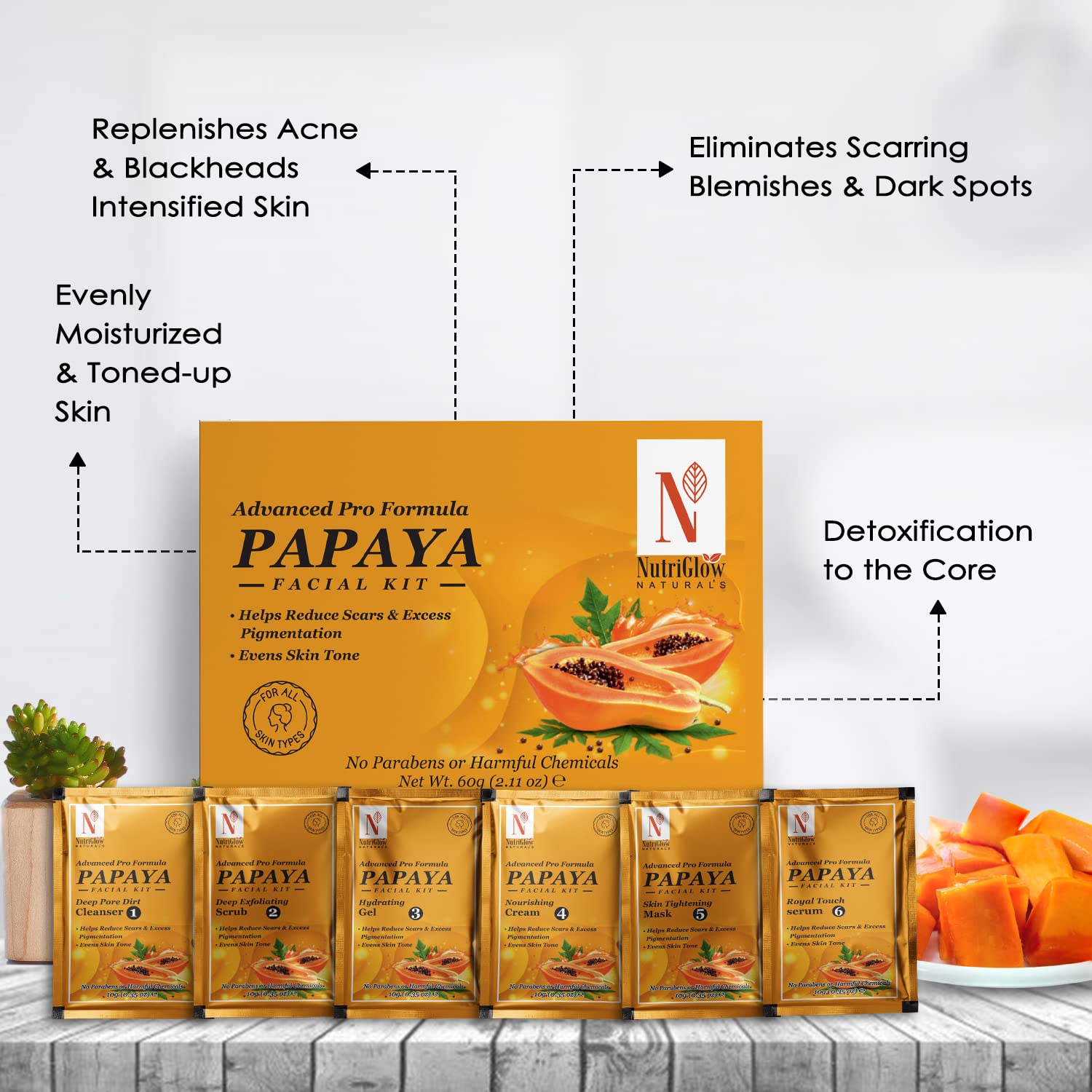 • Eliminates & Replenishes Acne & Blackheads Intensified Skin- Papaya deep cleanser & exfoliation scrub are effective in the removal of blackheads from the face. It o effectively removes acne & pimples and shows impeccable results for all skin types. It ref