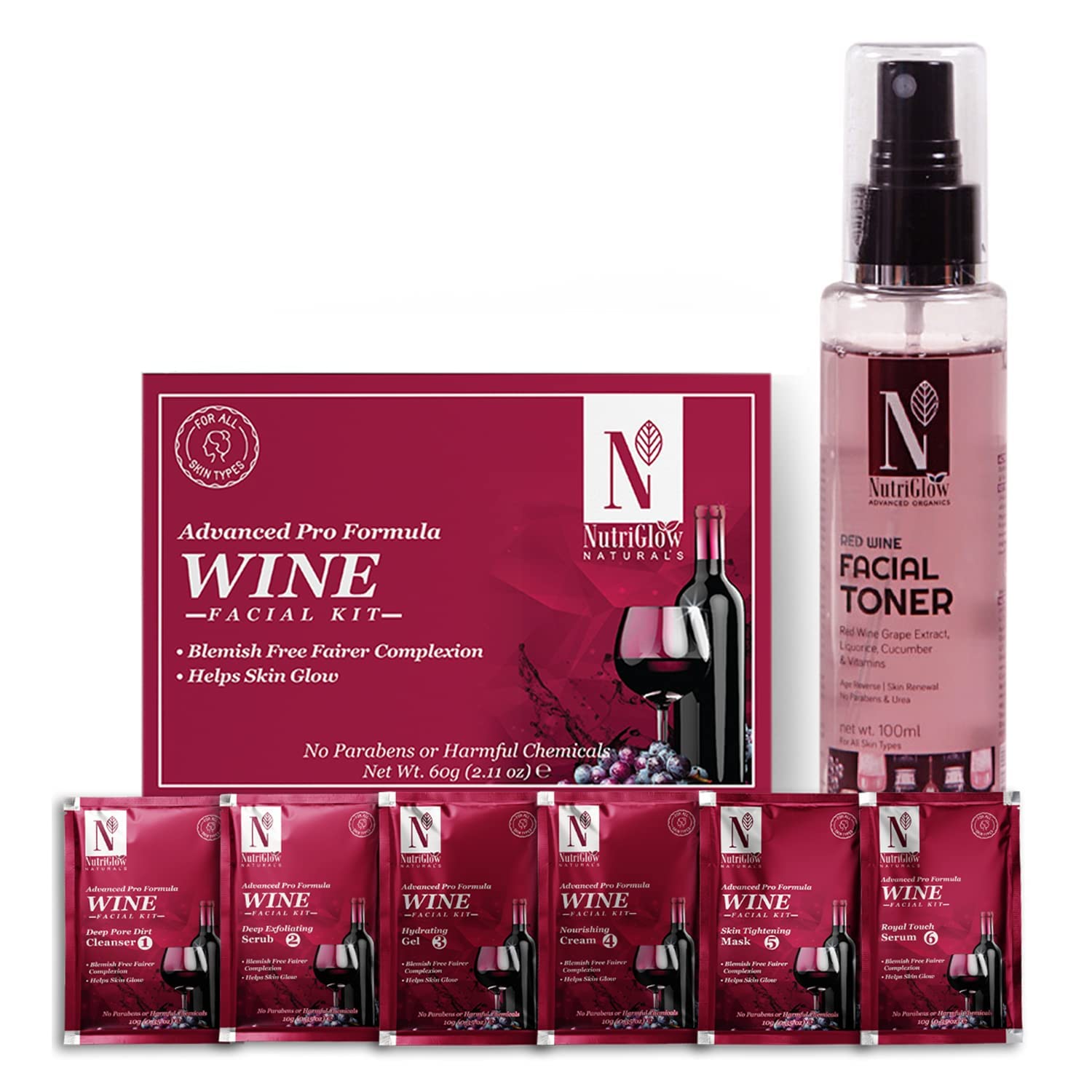 Wine Facial Kit With Toner and Cream (Facial Kit + Facial Toner + Fairness Cream) 1x260gm + 120ml + 50gm