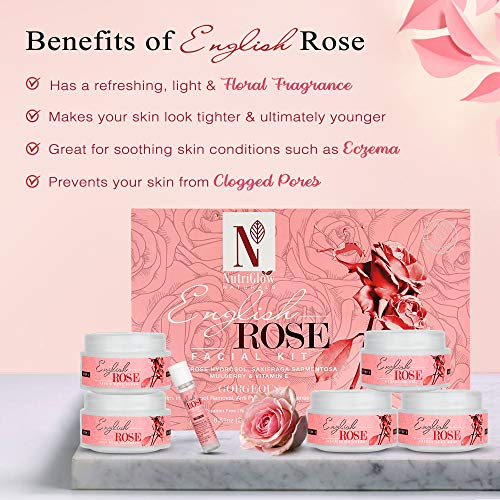 NutriGlow Natural's English Rose Facial Kit with Natural Rose Extracts for Radiant & Glowing Skin, (250g+10ml)