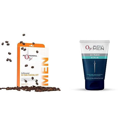 O3+ Caffeinated D-Tan Facial Kit & O3+ ALPHA MEN Acno D-TAN Scrub With Hyaluronic & Mint 50g - Detan Scrub for TAN removal Combo